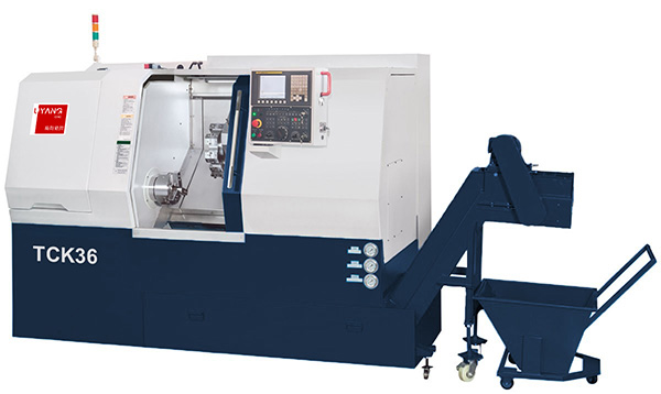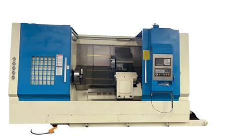 斜床身數(shù)控車床是一種高精度、高能效的自動化加工設備,其床身導軌平面與地平面呈傾斜角度(如3...